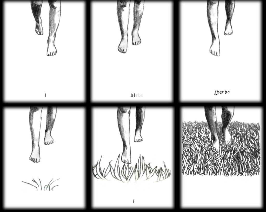 Aurore Salomon a choisi de fonder sur la pratique du dessin une démarche qui vient s’enraciner dans une expérience du territoire, l’exercice de la marche et de la découverte des lieux et des situations. La ville constitue une bonne part de son univers et de son propos, avec des montres de bétons, ses chemins labyrinthiques et ses dégagements imprévus sur des morceaux de nature, des bouts de mer, des lignes de fuite autoroutières. Là s’entrelacent des fragments d’histoires et de vies, un jeu de traces entremêlées, un palimpseste d’errances sur lequel jouent des enfants qui ont l’air d’avoir toujours su l’importance de l’instant qui passe.